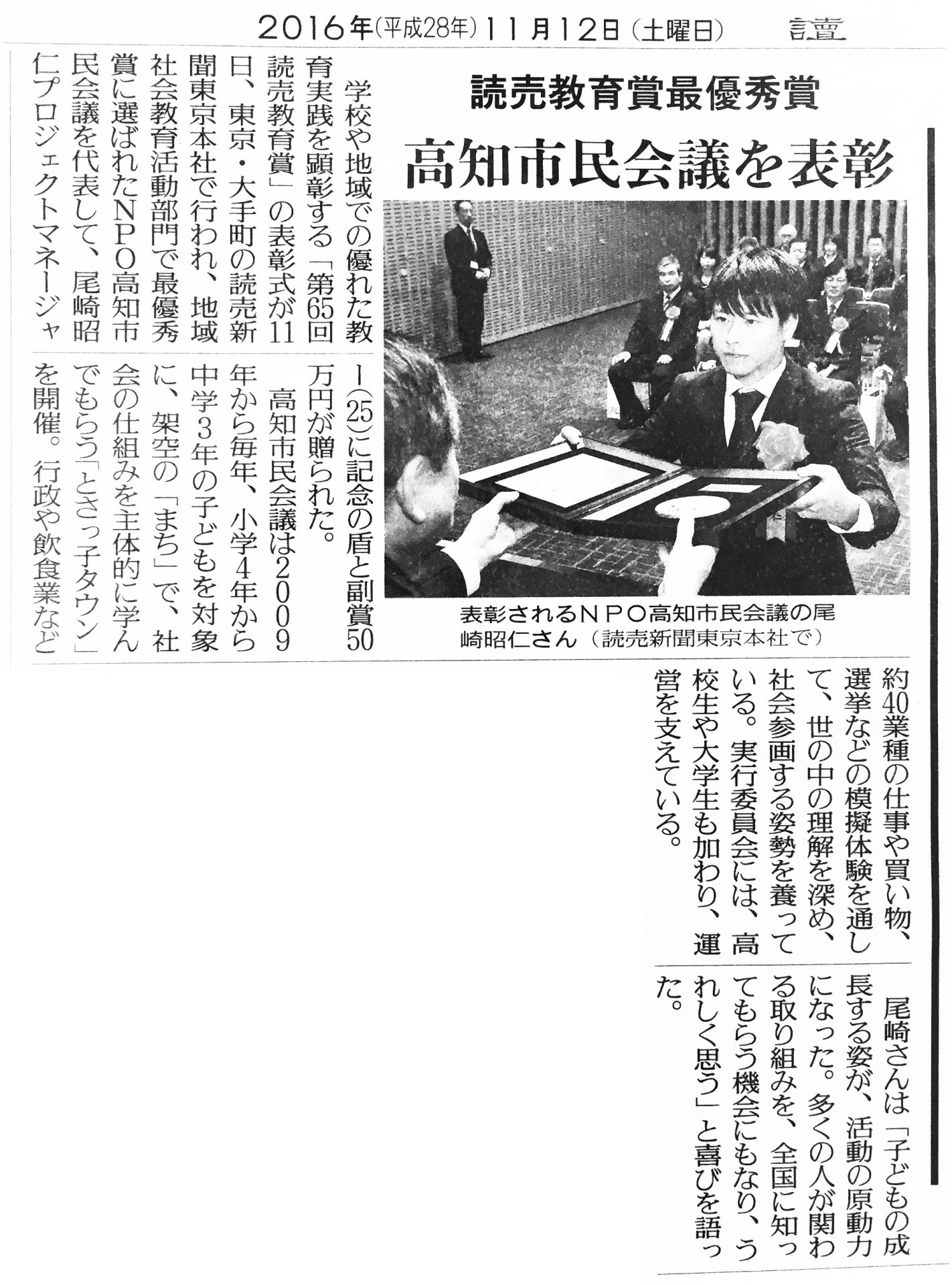 11月12日の読売新聞朝刊に授賞式に出席した記事が掲載されました。